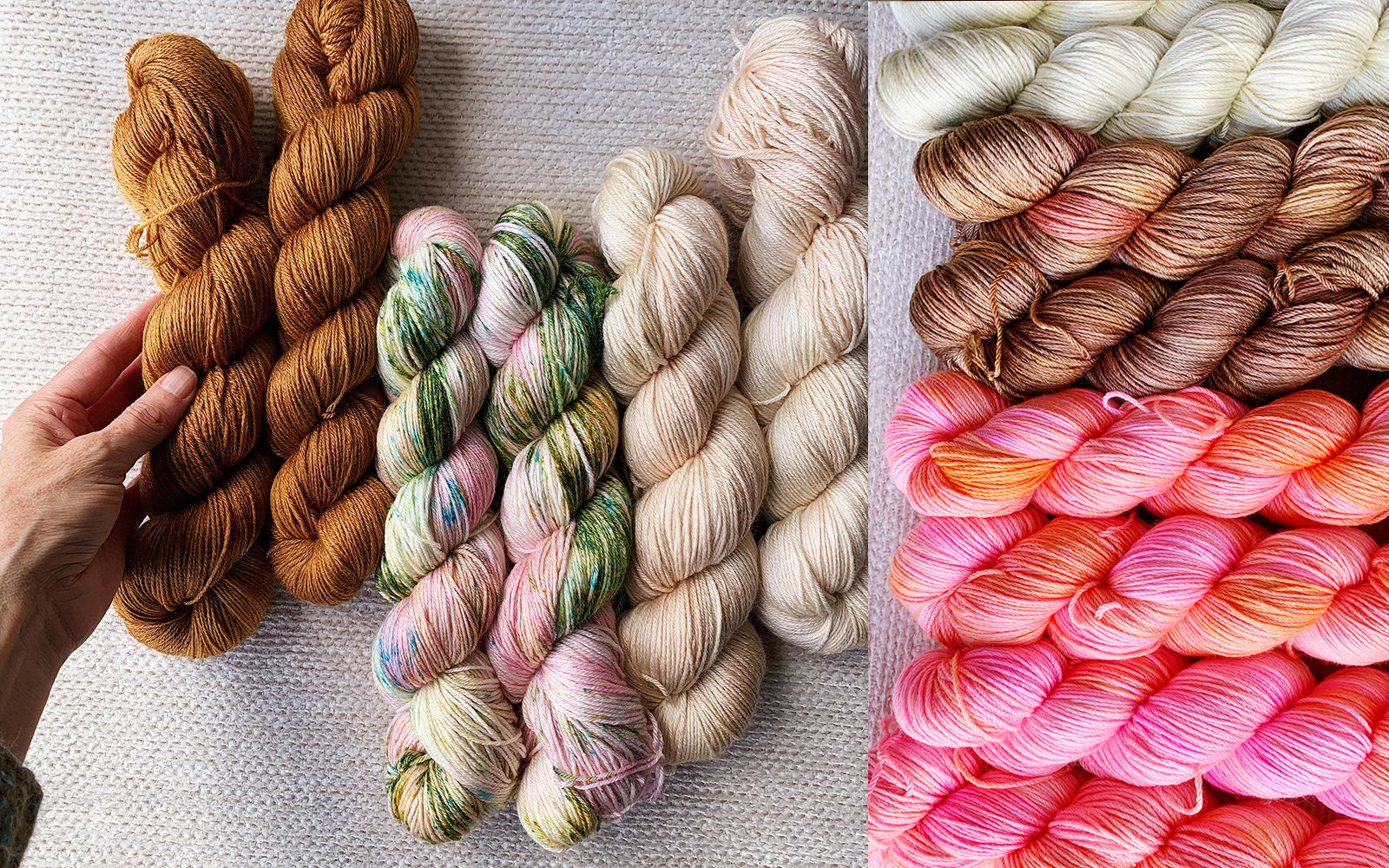 Our yarns are thoughtfully hand dyed in small batches, resulting in richly layered, one-of-a-kind colourways that are full of depth and character. Each skein is crafted with care, and we love imagining the beautiful, handmade pieces you’ll create with them.