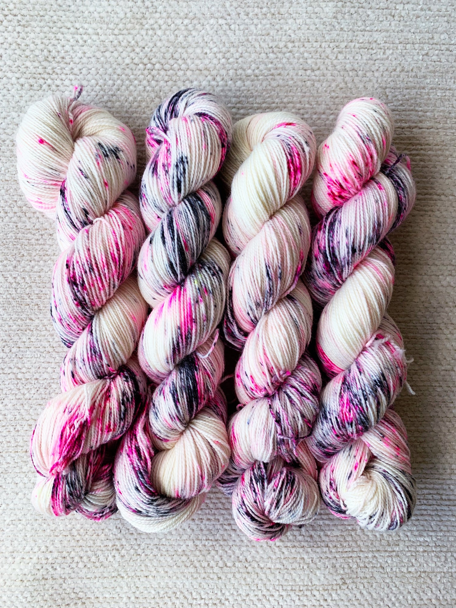 Soft and springy our All Rounder base will knit up to produce a fabric that is cushy yet light. With just a touch of nylon this yarn base is perfect for pretty much all projects. Ideal for sweaters, kids and baby wear, hats, gloves, shawls, socks and shawls to name a few.