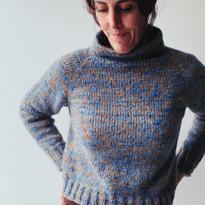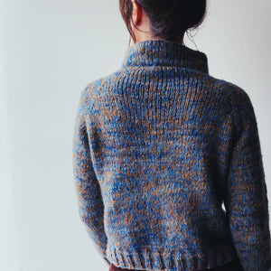 Lucca has a wonderful retro vibe with its wide-funnel neck, cropped body and tapered sleeves. It’s simple to knit and very cosy to wear. Lucca is sure to become a winter-wardrobe staple.