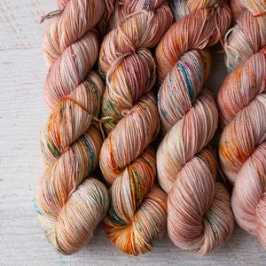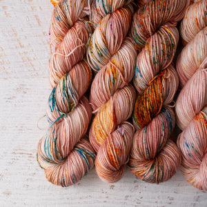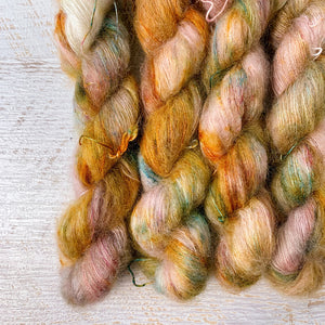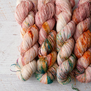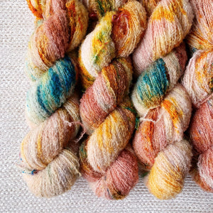 Yarn is dyed to order; please allow 3 weeks for yarns to ship. Pictured is an example of what the colourway will look like; however, please know that some variation does occur with hand-dyed yarns. ACM dyes up very differently to our other yarn bases, where possible we have added pictures. Mohair Silk Lace also dyes up differently in speckled and variegated colours.