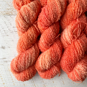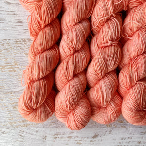 Yarn is dyed to order; please allow 3 weeks for yarns to ship. Pictured is an example of what the colourway will look like; however, please know that some variation does occur with hand-dyed yarns. ACM dyes up very differently to our other yarn bases, where possible we have added pictures. Mohair Silk Lace also dyes up differently in speckled and variegated colours.