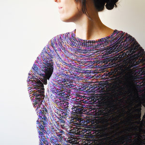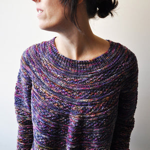 Porto features a simple, top-down yoke design with an easy-to-remember, all-over-textured pattern. The slim-lined lower sleeves and an over-sized yoke give this sweater a modern look, while the relaxed fit offers plenty of ease in the body, making it very comfortable and cozy to wear.