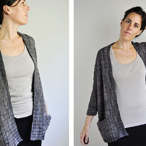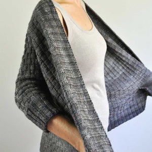 A cosy, oversized cardigan featuring flattering slim sleeves, dropped shoulder construction and, most importantly, pockets! While the cardigan is designed to be worn open, a shawl-pin closure would look fantastic. A simple, throw-on-and-go cardigan that is sure to become a wardrobe staple.