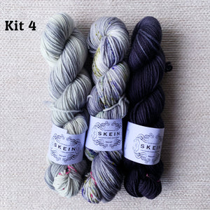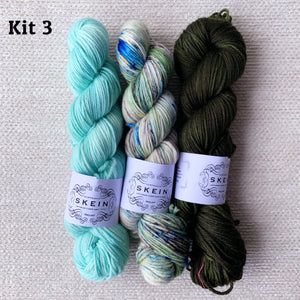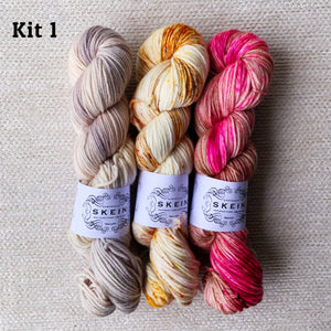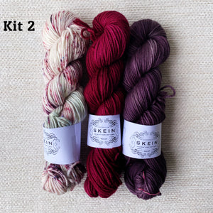 All kits come with three skeins of Cushy DK (one skein of each colour) and a PDF pattern.