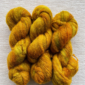 A delightfully soft and fluffy yarn that is spun with a core ply of cotton that remains white after dyeing. This produces little white flecks and adds further depth to each colourway. Ideal for shawls, garments and hats.