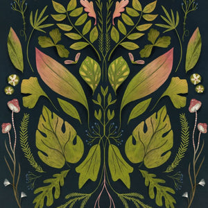 Splashes of apple green, pale pink, blue and green with a deep teal mini.
