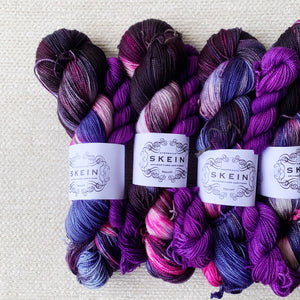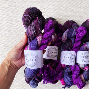 Our Sugar Rush sock kits are inspired by all the sweet, yummy treats. These kits have been infused with a ton of colour, with the specific purpose of knitting up into a pair of saweet socks. Colourways are one-of-a-kind and will never be repeated, so if you see a kit you love, grab it while you can.