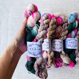 Our Sugar Rush sock kits are inspired by all the sweet, yummy treats. These kits have been infused with a ton of colour, with the specific purpose of knitting up into a pair of saweet socks. Colourways are one-of-a-kind and will never be repeated, so if you see a kit you love, grab it while you can.
