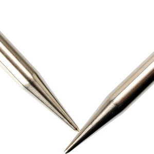 ChiaoGoo Red Lace fixed circular needles feature a smooth, satin-sheen finish with steel cable wrapped in nylon for convenient yarn gliding. Needle size is permanently marked on each circular, and the tips are ergonomically designed for reduced hand fatigue.