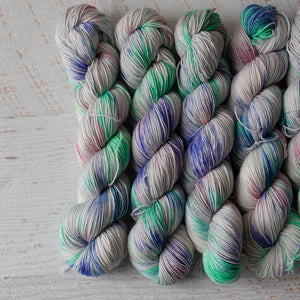 パープル、スペアミント、ブラッシュ ピンクのスプラッシュとシルバーの倍音。