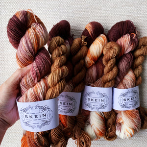 Our Sugar Rush sock kits are inspired by all the sweet, yummy treats. These kits have been infused with a ton of colour, with the specific purpose of knitting up into a pair of saweet socks. Colourways are one-of-a-kind and will never be repeated, so if you see a kit you love, grab it while you can.