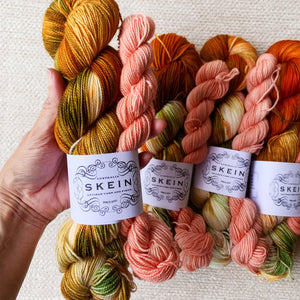 Our Sugar Rush sock kits are inspired by all the sweet, yummy treats. These kits have been infused with a ton of colour, with the specific purpose of knitting up into a pair of saweet socks. Colourways are one-of-a-kind and will never be repeated, so if you see a kit you love, grab it while you can.