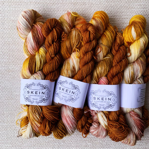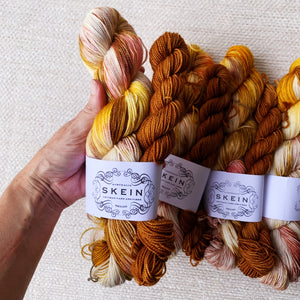 Our Sugar Rush sock kits are inspired by all the sweet, yummy treats. These kits have been infused with a ton of colour, with the specific purpose of knitting up into a pair of saweet socks. Colourways are one-of-a-kind and will never be repeated, so if you see a kit you love, grab it while you can.