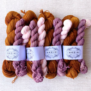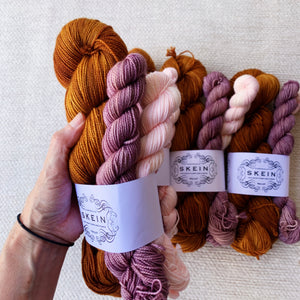 Colourwork Sock Sets contain a 100g skein with two contrasting 20g minis. They are perfect for colourwork socks, cowls, mitts and more!