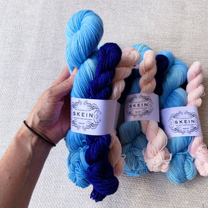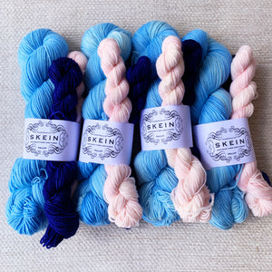 Colourwork Sock Sets contain a 100g skein with two contrasting 20g minis. They are perfect for colourwork socks, cowls, mitts and more!