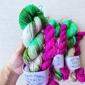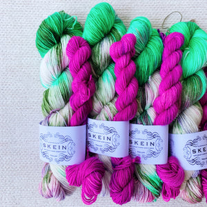 Our Sugar Rush sock kits are inspired by all the sweet, yummy treats. These kits have been infused with a ton of colour, with the specific purpose of knitting up into a pair of saweet socks. Colourways are one-of-a-kind and will never be repeated, so if you see a kit you love, grab it while you can.