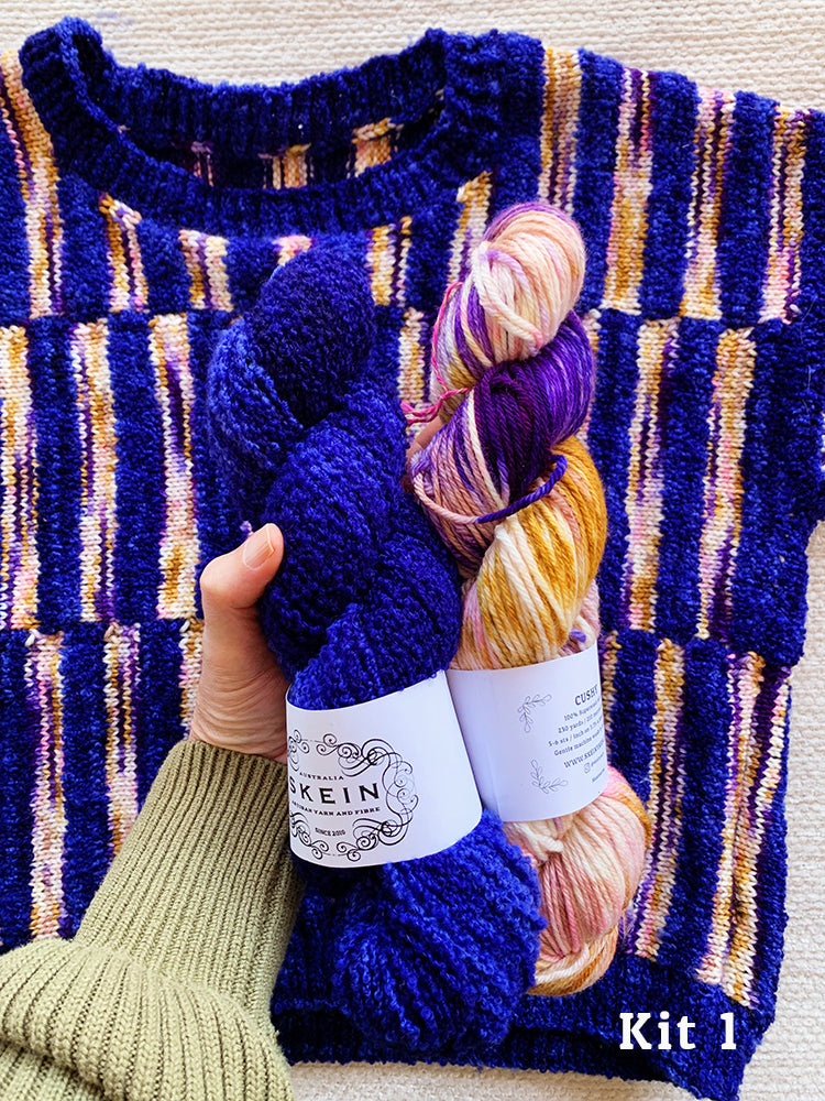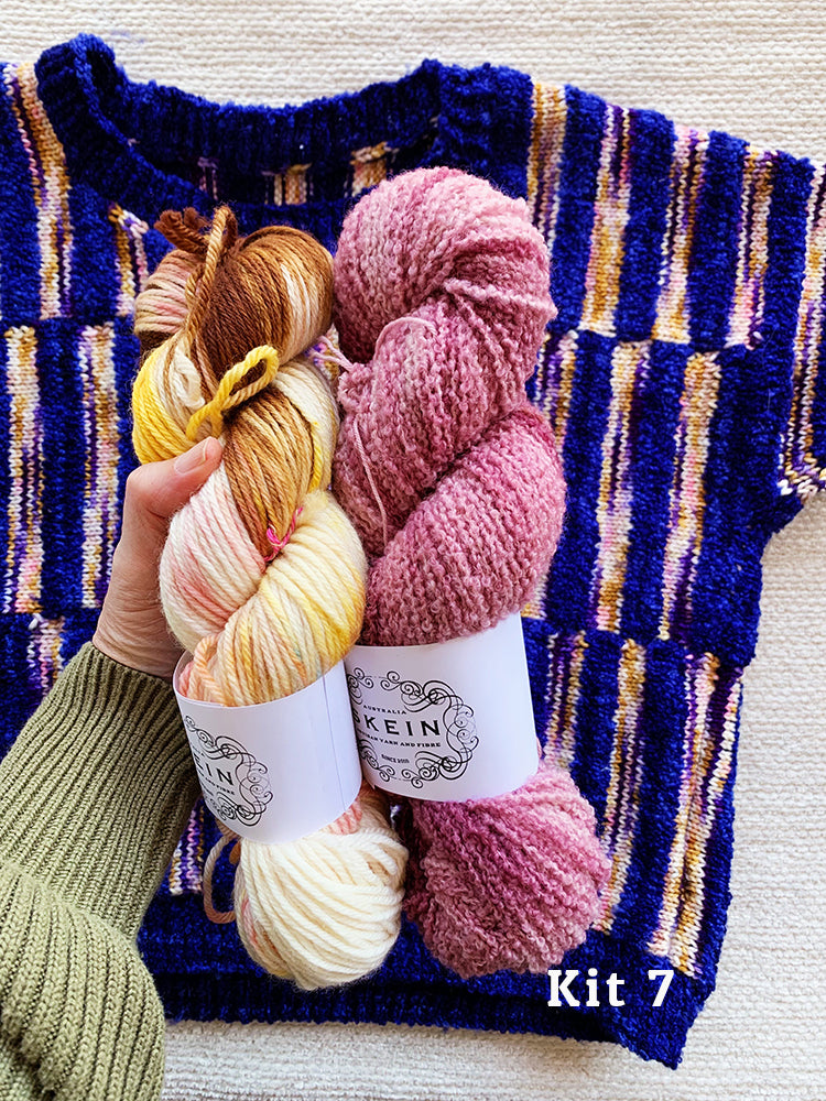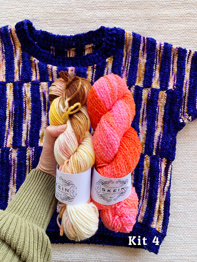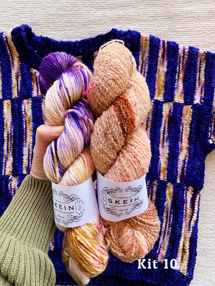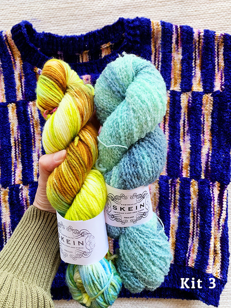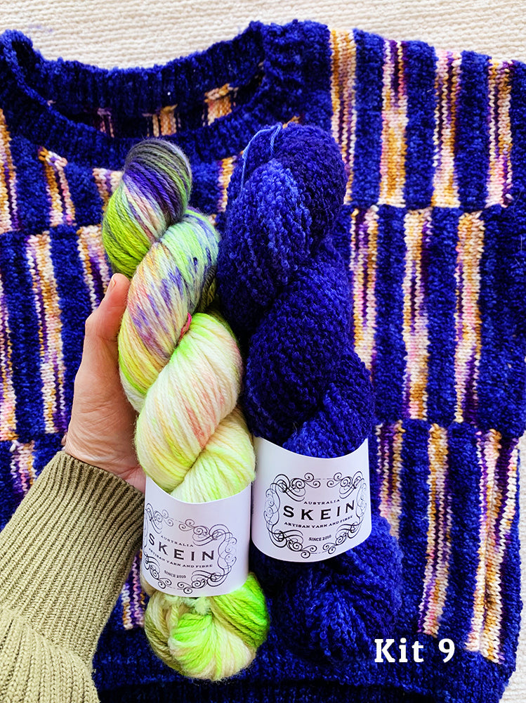 Most of our yarns are in stock and ready to ship; however, once stock gets low we will be dyeing kits to order (these will take around 2 weeks to ship).  If you would like to customise your kit, we will be happy to arrange that for you, so feel free to contact us.  Pattern is not included in the kit; it can be purchased separately via Ravelry.