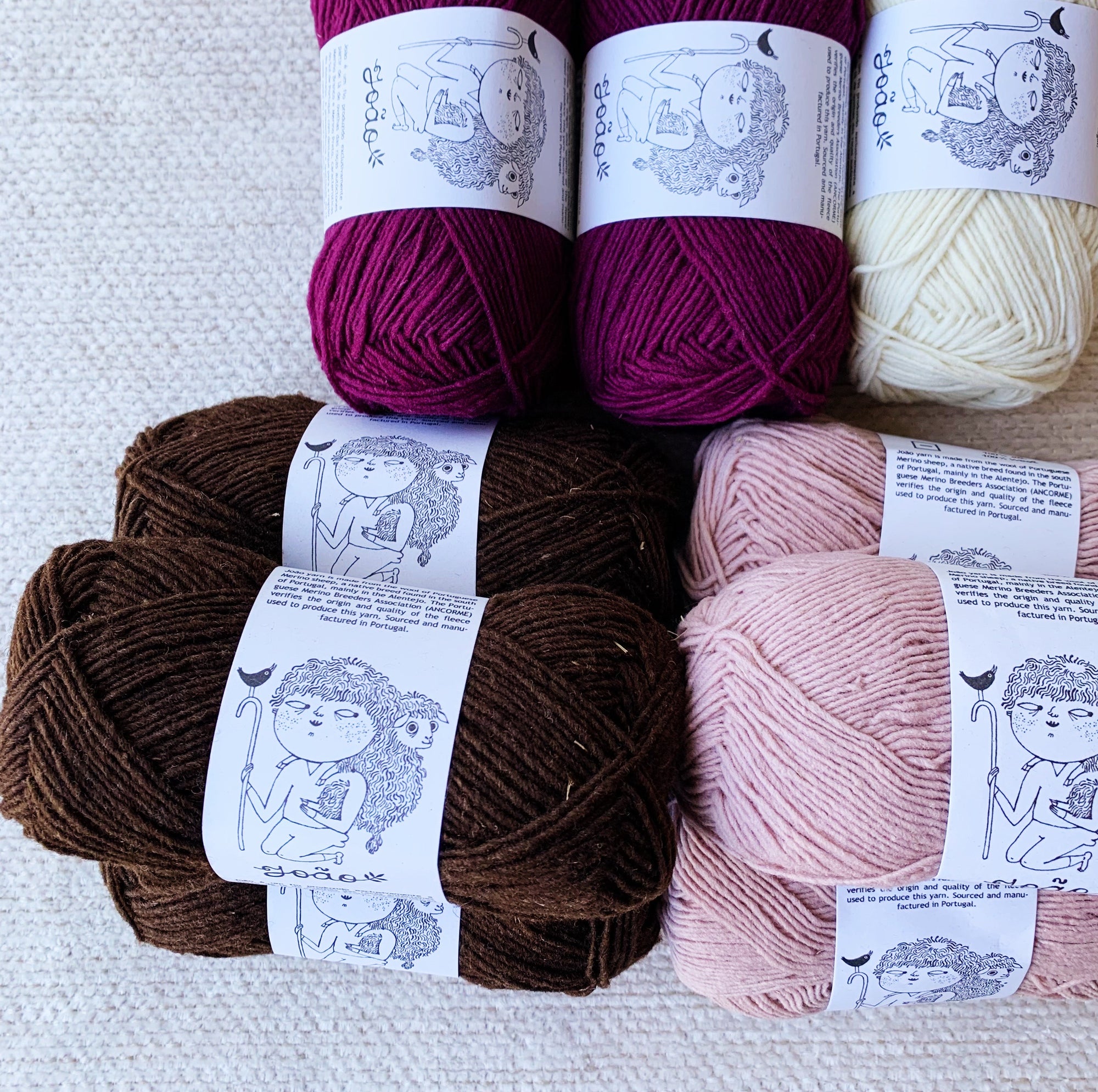 João is made from the wool of Portuguese Merino sheep, a native breed found in the south of Portugal, mainly in the Alentejo. The Portuguese Merino Breeders Association (ANCORME) verifies the origin and quality of the fleece used to produce this yarn. The yarn is a sport-weight single ply with a thick, thin texture that knits up into a lovely bouncy, squishy fabric. It is dyed in gorgeous shades and can be used for garments, hats, shawls and more! It's also great for colourwork, textured fabrics like cables, and is perfect for stockinette and garter stitch, too.