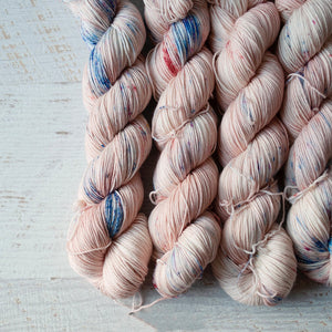 Yarn is dyed to order; please allow 3 weeks for yarns to ship. Pictured is an example of what the colourway will look like; however, please know that some variation does occur with hand-dyed yarns. Mohair Silk Lace dyes up in speckles and variegated colours differently. If you have any questions feel free to contact us.
