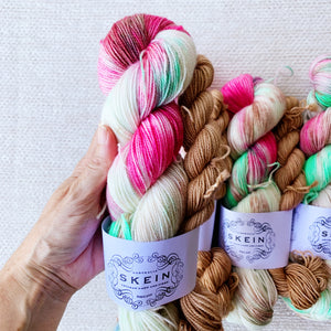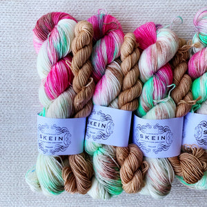 Our Sugar Rush sock kits are inspired by all the sweet, yummy treats. These kits have been infused with a ton of colour, with the specific purpose of knitting up into a pair of saweet socks. Colourways are one-of-a-kind and will never be repeated, so if you see a kit you love, grab it while you can.