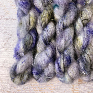 糸は注文に応じて染められます。糸の発送には3週間ほどお時間をいただいております。写真はカラーウェイがどのように見えるかの例です。ただし、手染めの糸には多少のばらつきが生じることをご承知おきください。モヘア シルク レースは、斑点と多彩な色に異なる色に染まります。ご不明な点がございましたら、お気軽にお問い合わせください。