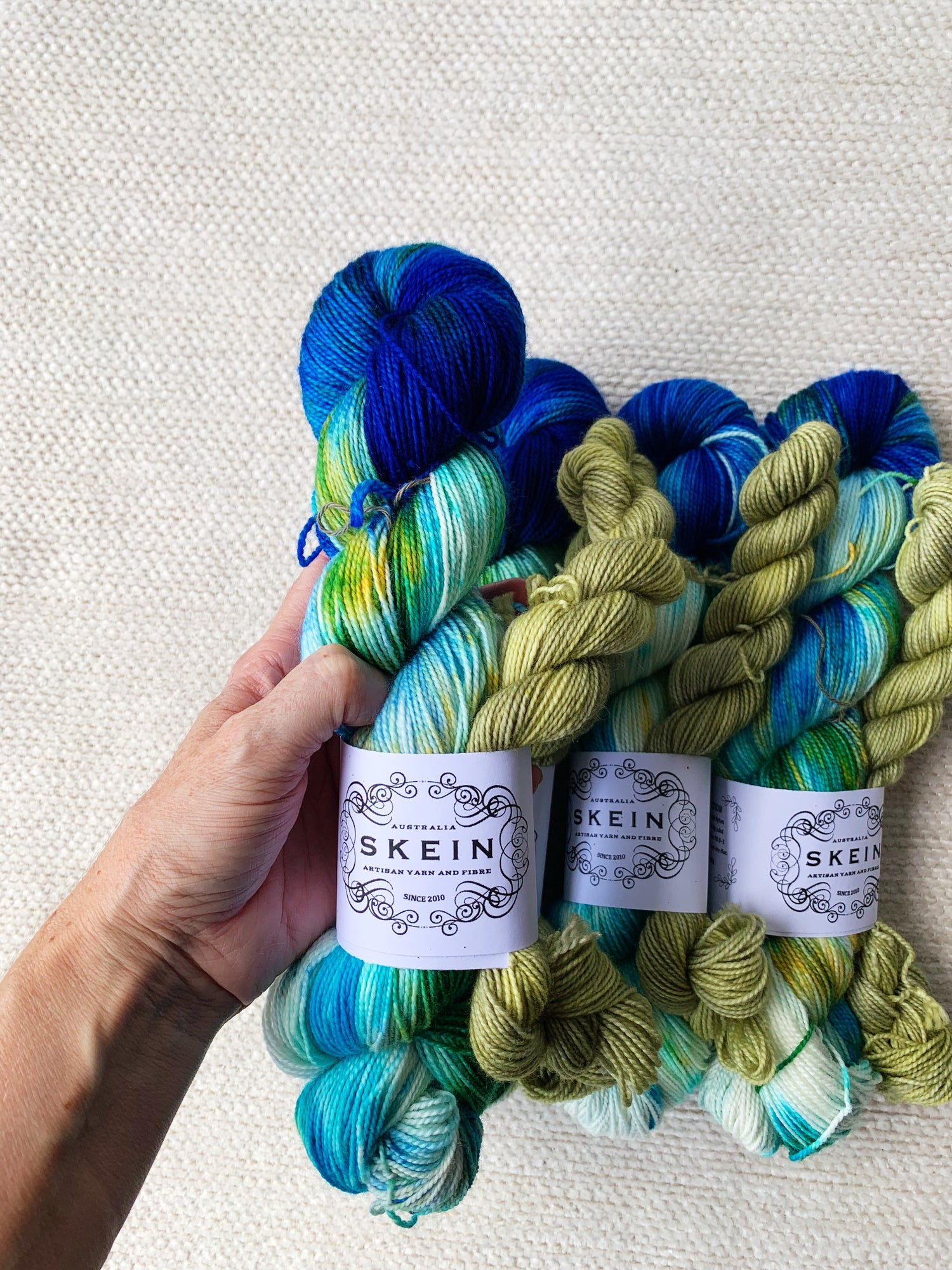 Crystal Collection sock sets have been dyed especially for our 15 year - i.e. crystal - anniversary.  Colours are inspired by crystals/gems and are one of a kind and will never be repeated. So, if you see a kit you love, grab it while you can.  Each sock set will knit up into micro stripes.  There is enough yardage in a sock set to make an adult pair of socks.