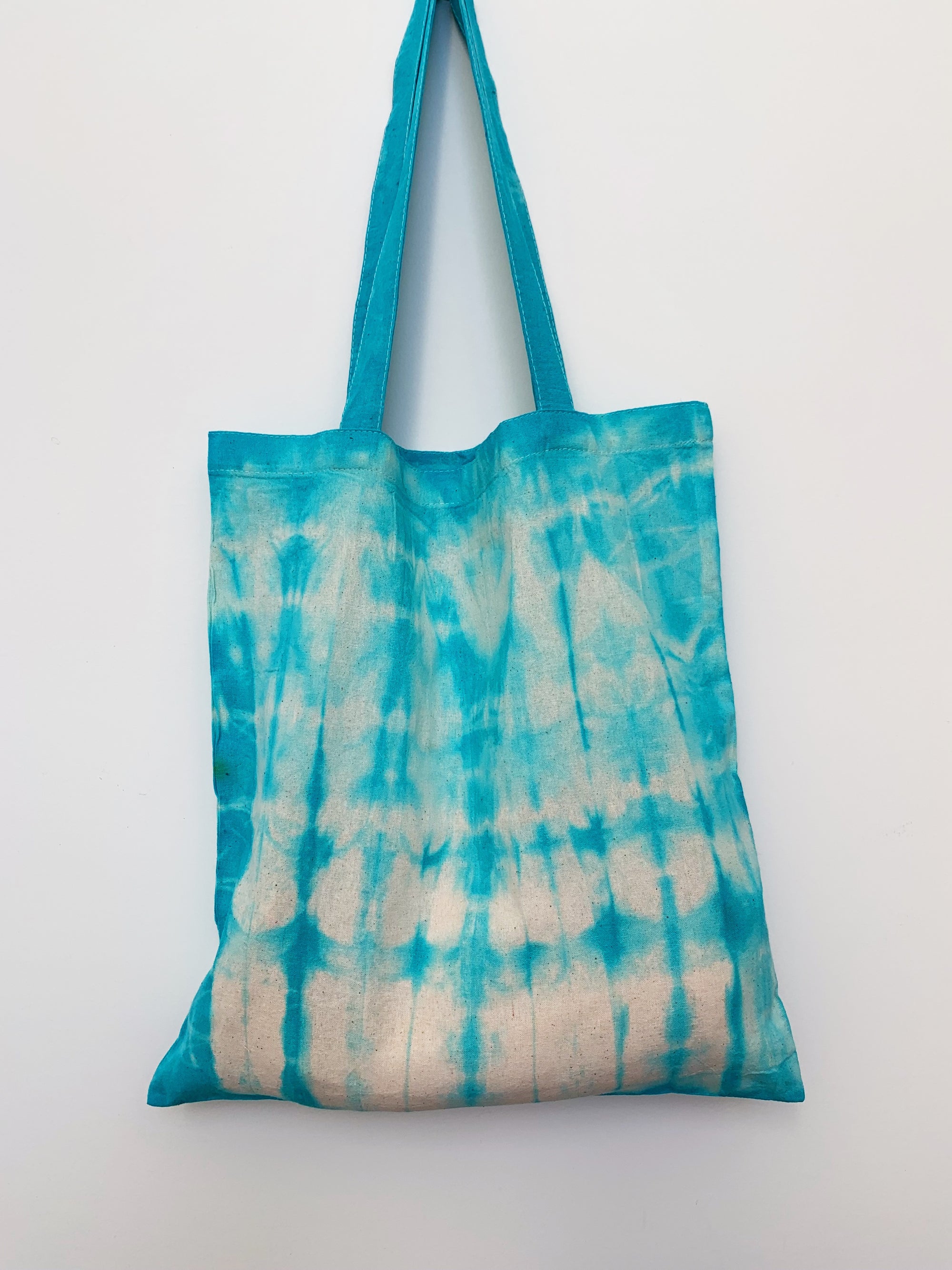 Each bag is 100% cotton and features its own unique shibori pattern, dyed in our studio by Kristen. They are the perfect size for most sweater projects or large shawls.