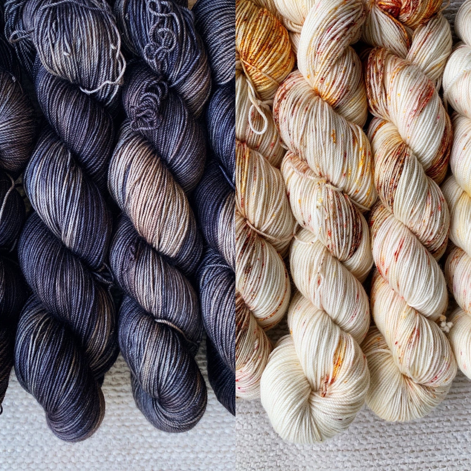 As El Merino has been discontinued we have chosen our beautiful new base Allure as it's substitute. Each kit includes 4 skeins of Allure — 2 skeins in each contrasting colour — to create this generous, elegant wrap. Kits are dyed to order and take around 2 weeks to ship. Pattern is not included and can be purchased via Ravelry.
